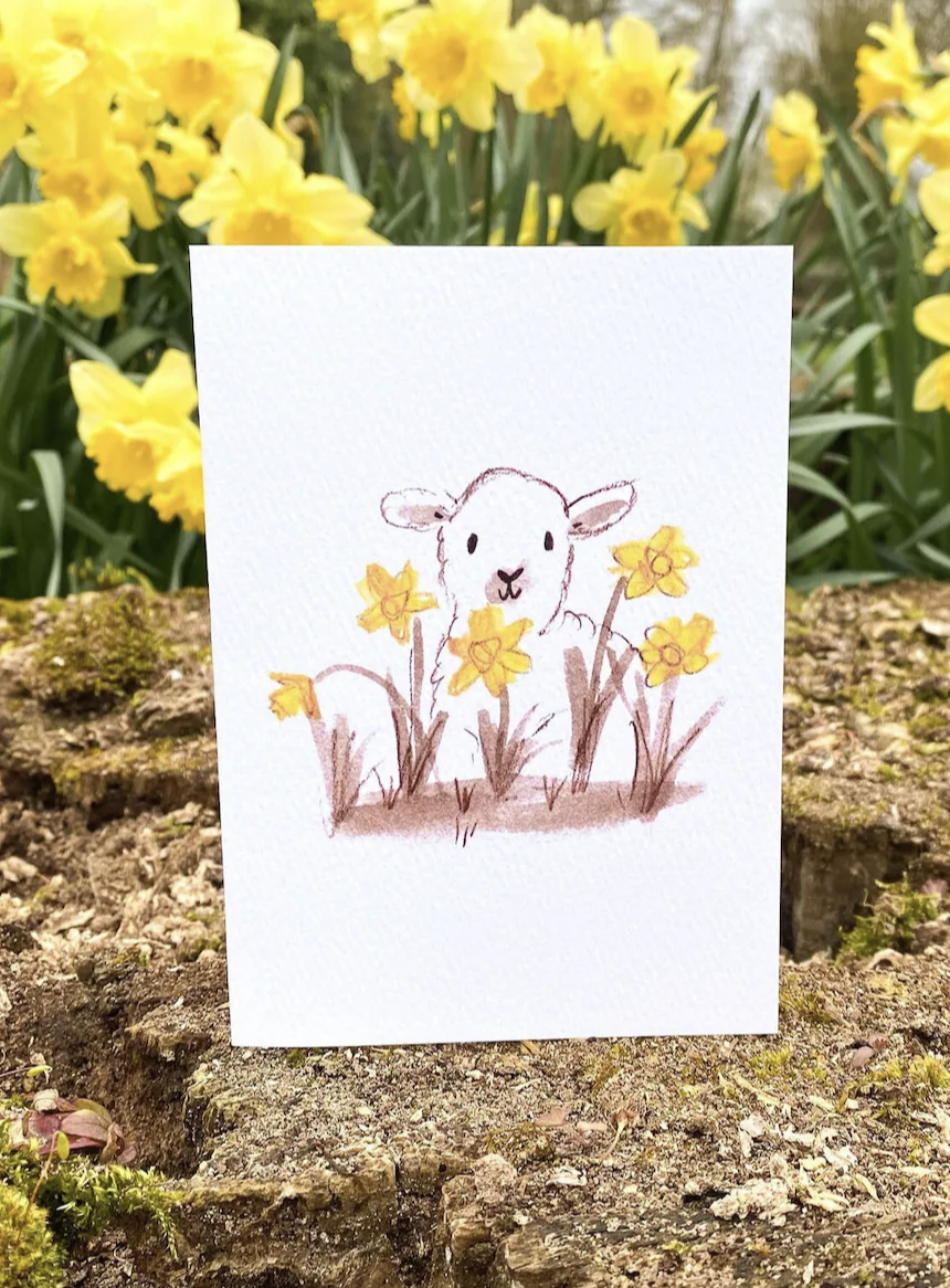 Spring Lamb & Daffodils Card – 105mm x 148mm 🐑🌼💛