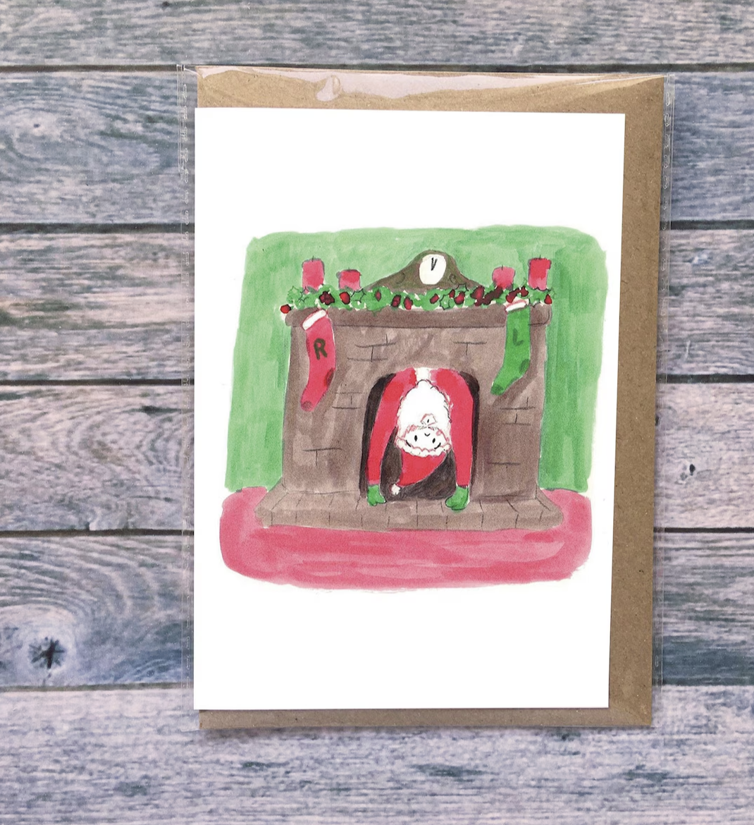 Add a touch of festive fun to your Christmas greetings with this charming illustrated card, designed and created by me. Featuring a playful scene of Santa stuck in the chimney 🎅🔥, this magical design is sure to bring a smile and a bit of holiday humour ✨
