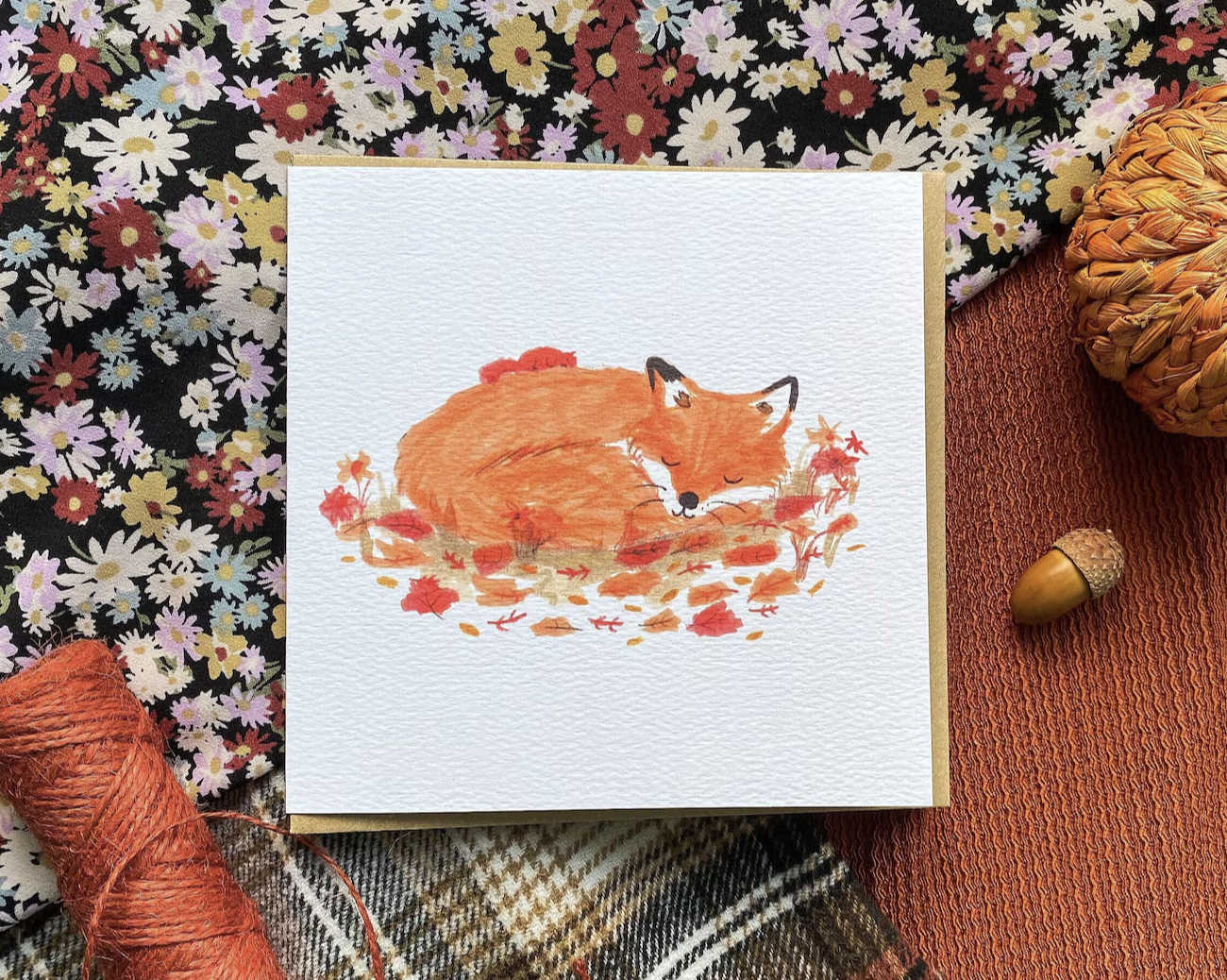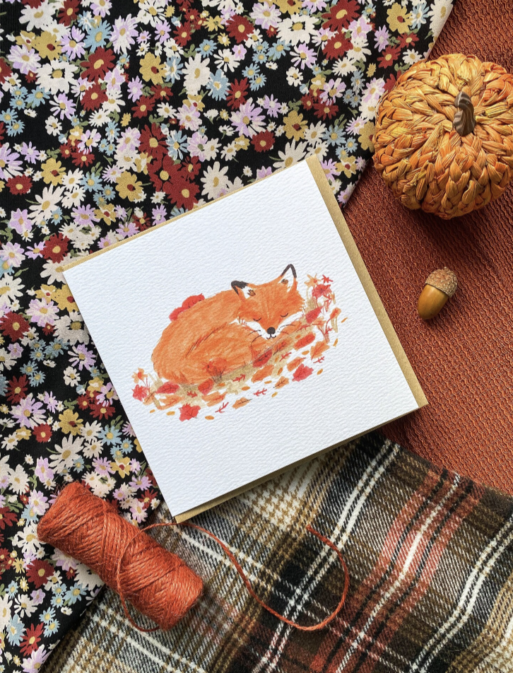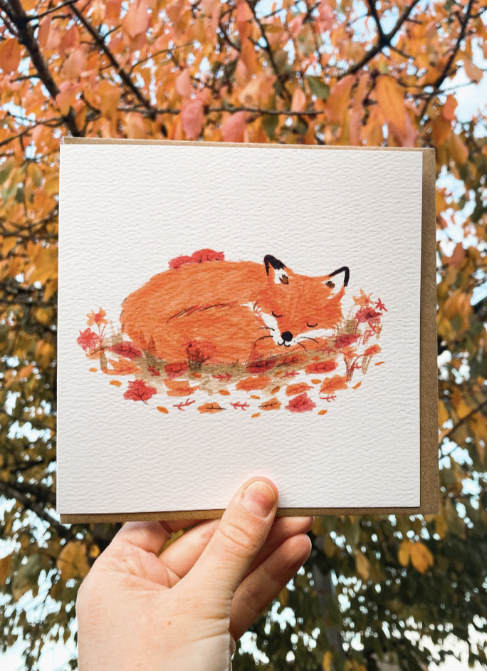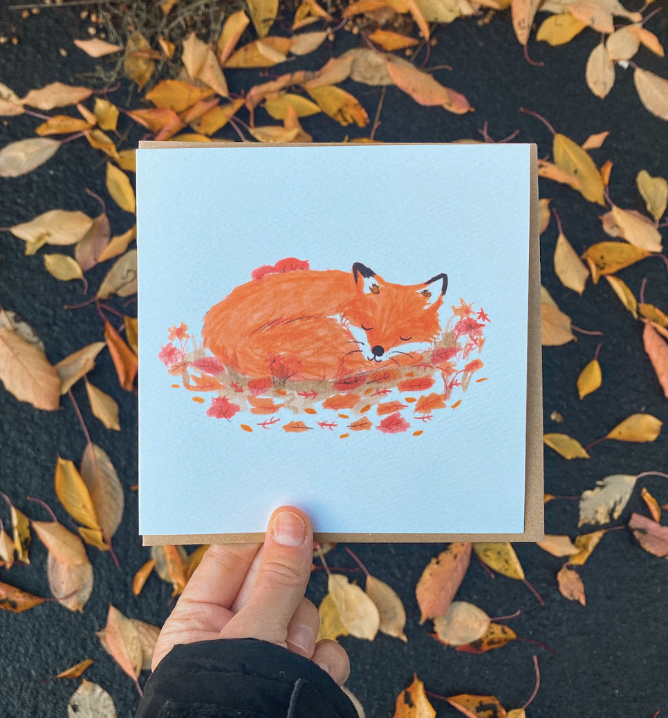 Send a little woodland warmth with this beautifully illustrated card, designed and created by me. Featuring a peaceful sleeping fox curled up beside a squirrel 🐿️, this cosy design is perfect for any occasion—from birthdays to thank you notes or just because 💕