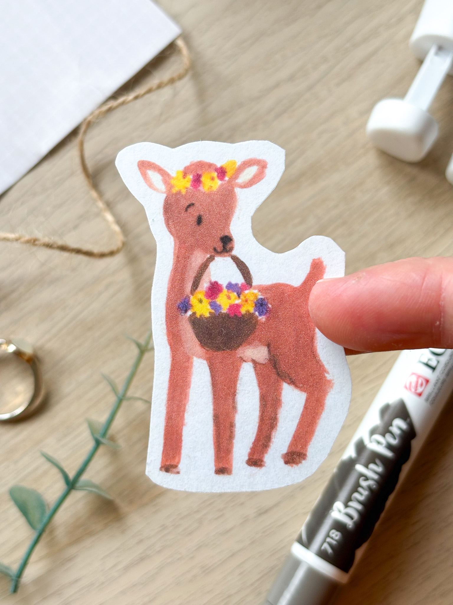 Celebrate the beauty of spring with this adorable deer sticker, designed and illustrated by me. Featuring a sweet brown fawn carrying a basket of flowers 🌼, this design is full of warmth and charm—perfect for Easter or as a year-round treat for yourself or a loved one 💕