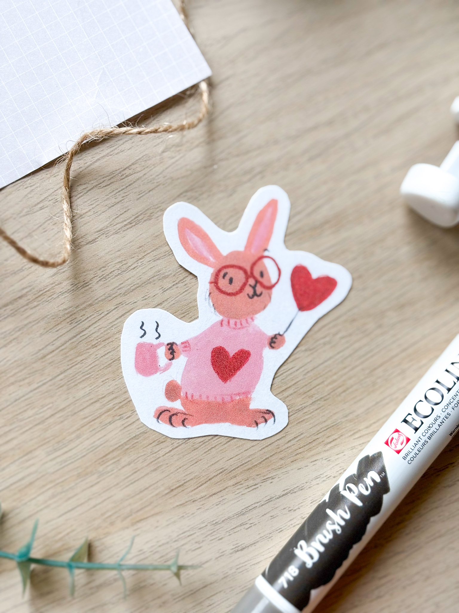 Add a little sweetness to your everyday items with this adorable bunny sticker, designed and illustrated by me. Featuring a happy brown rabbit holding a cosy mug ☕ and a lollipop 🍭, this design is full of charm—perfect for Valentine’s gifting or as a year-round treat for yourself or someone special 💕