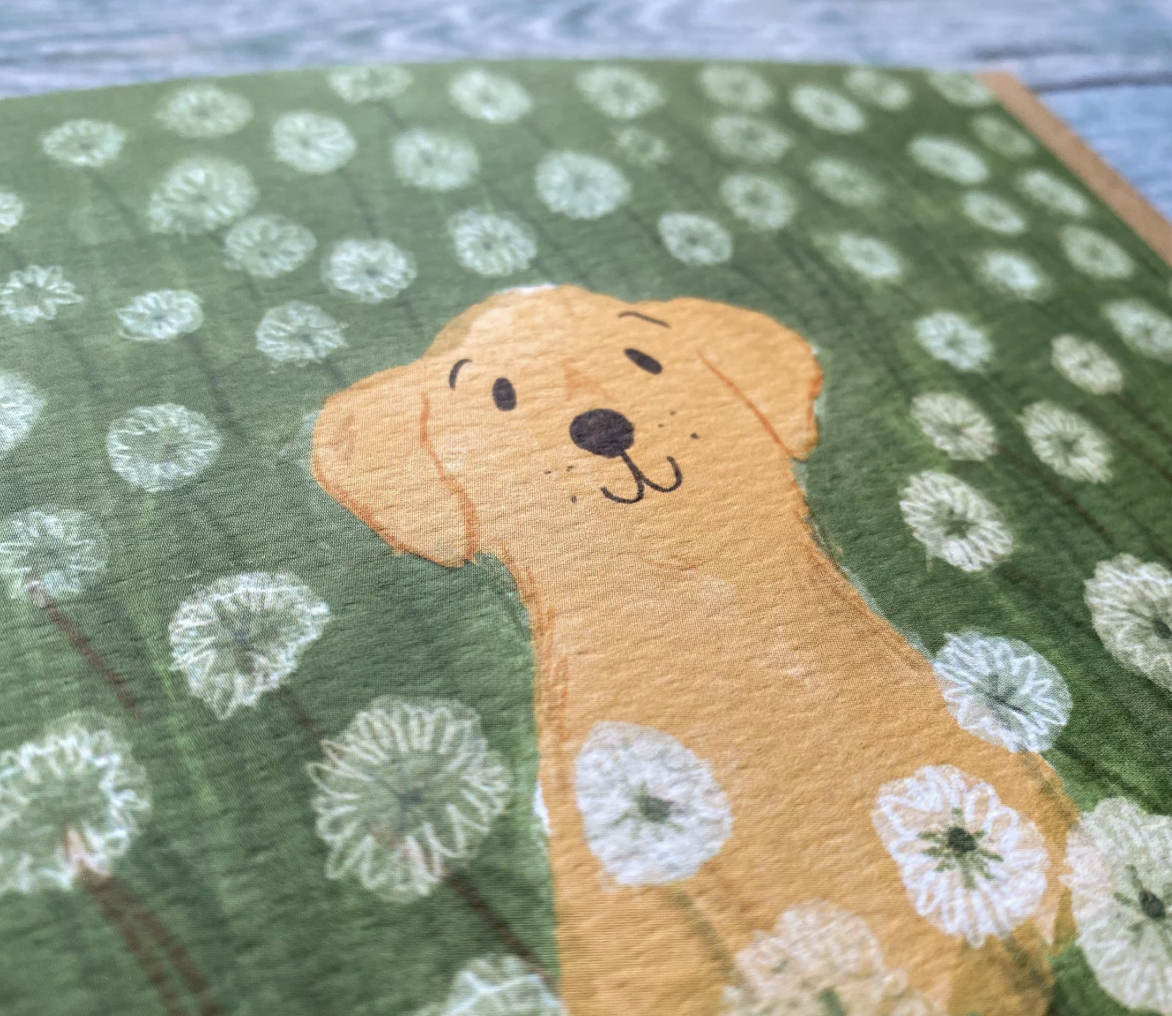 Add a touch of rustic charm with this beautifully illustrated card featuring a cute golden Labrador in a dandelion field. Designed and drawn digitally by me in Procreate, this card is perfect for any occasion with its blank interior for your personal message.